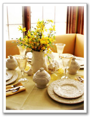 Use baskets or containers made with natural materials such as wicker to hold fresh fruits add a punch of color and connect you to Mother Earth. Lemons, lime, and green apples are all in keeping with my favorite Spring color scheme.